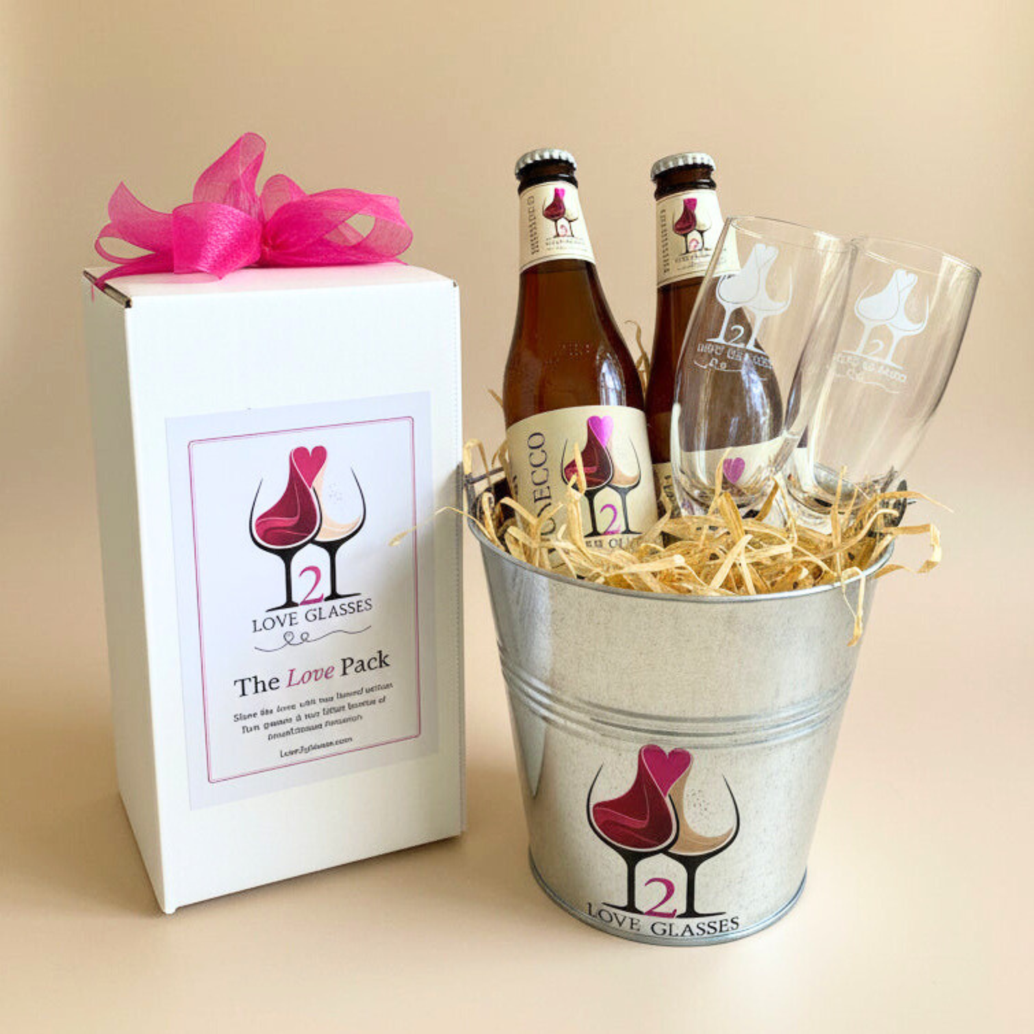 Share the Love, with two limited edition flute glasses & two 330ml bottles of Love2Glasses Prosecco.